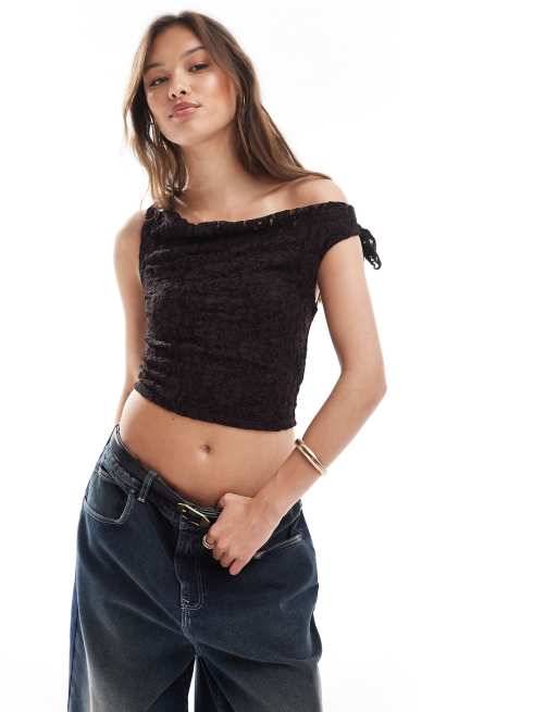 Bershka - Corsetto in pizzo marrone cioccolato