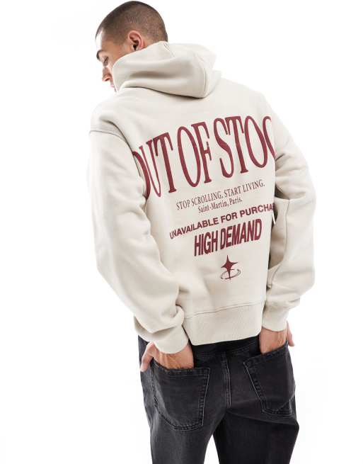 Bershka - Felpa con cappuccio beige con stampa "High Demand"