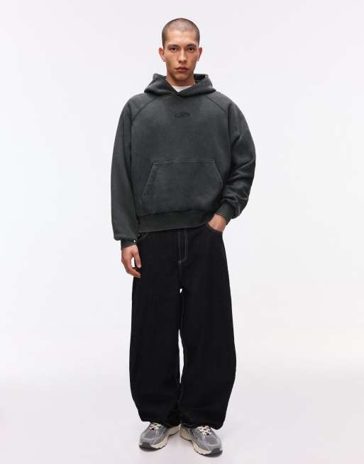 Bershka - Felpa con cappuccio squadrata bianca e nera