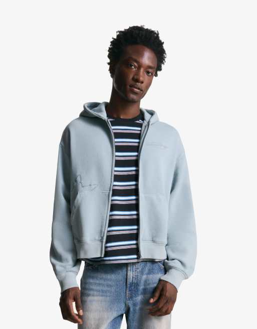Bershka - Felpa corta blu chiaro con zip e ricami
