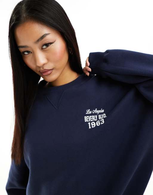 Bershka - Felpa oversize blu navy con stampa Beverly Hills