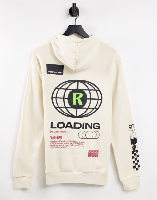 Bershka - Felpa oversize con cappuccio beige con stampa