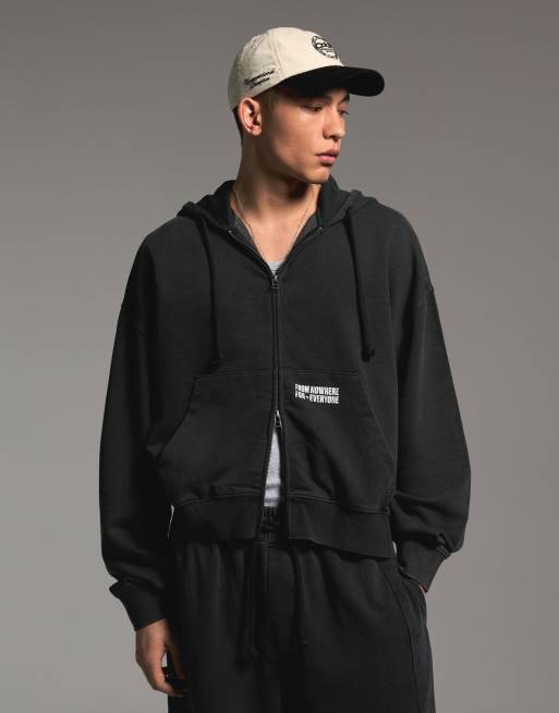 Bershka - Felpa squadrata nera con stampa e zip