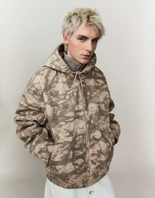 Bershka - Giacca imbottita marrone con zip e cappuccio
