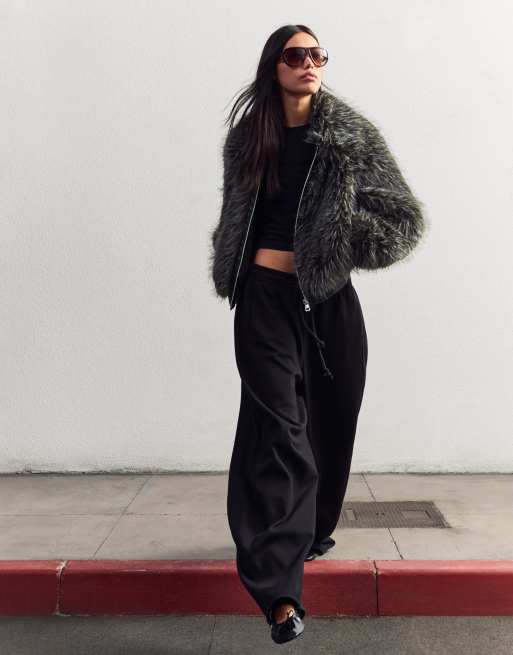 Bershka - Giacca in pelliccia sintetica grigia con zip