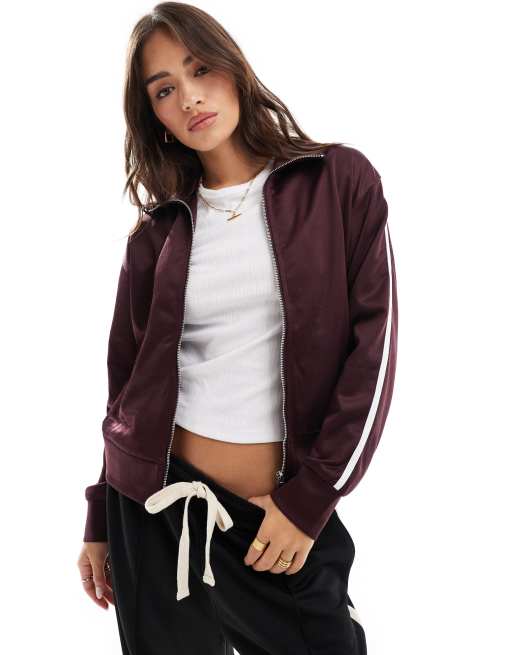 Bershka - Giacca sportiva bordeaux con chiusura con zip
