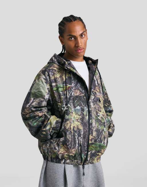 Bershka - Giacca tecnica kaki con stampa di foglie