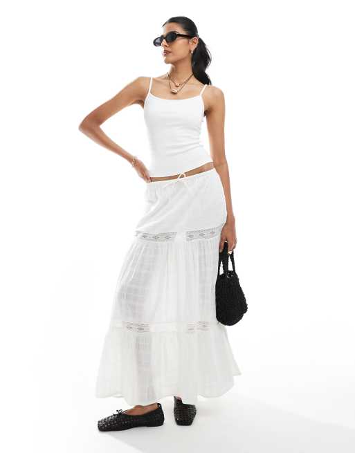 Bershka - Gonna lunga bianca a balze con ricami in pizzo