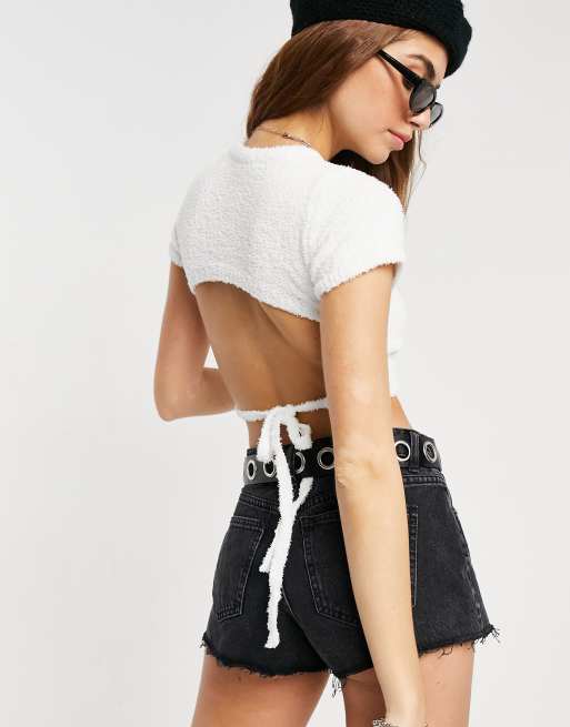 Bershka - Maglione corto morbido bianco aperto dietro senza maniche