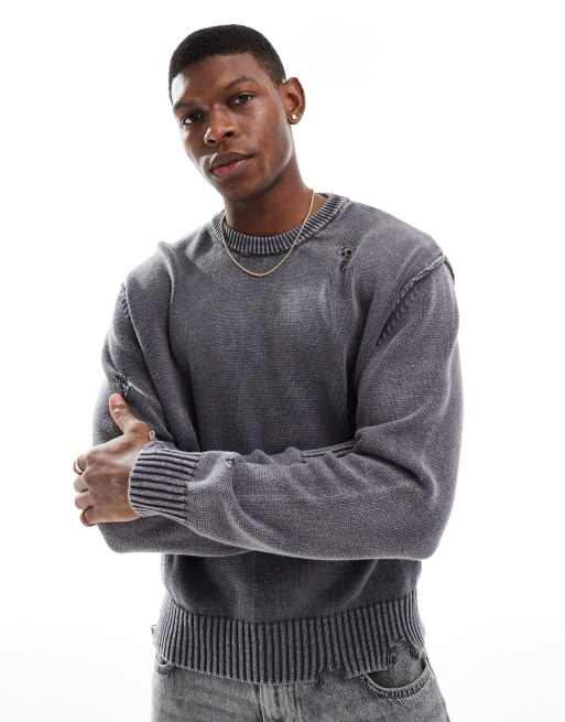 Bershka - Maglione grigio antracite slavato