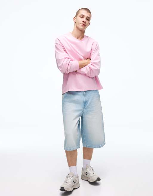 Bershka - Pantaloncini bermuda in denim blu chiaro stile skater