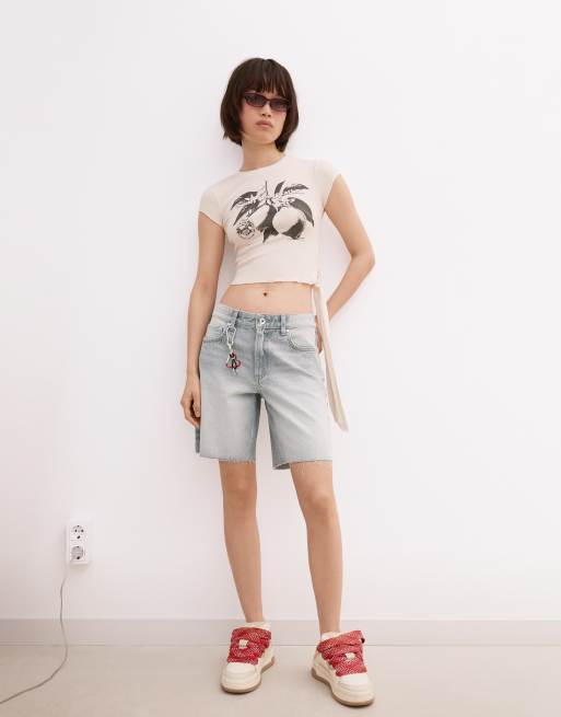 Bershka - Pantaloncini bermuda in denim grigio chiaro