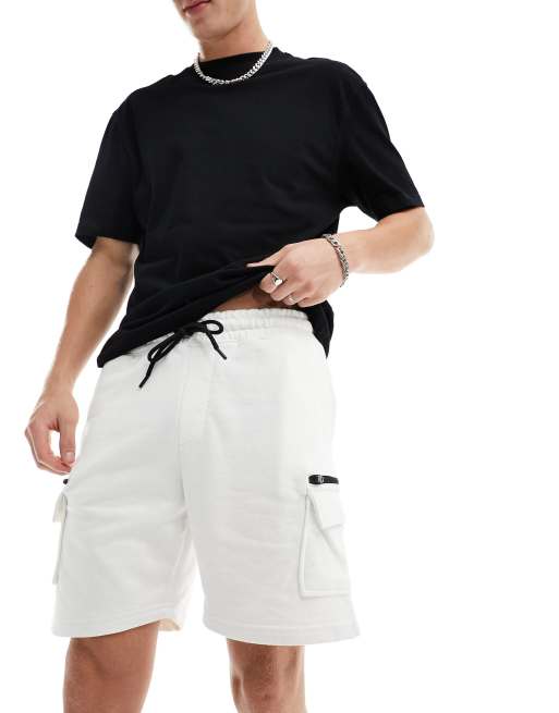 Bershka - Pantaloncini cargo in jersey bianchi