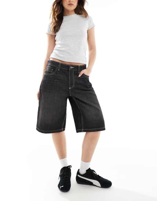 Bershka - Pantaloncini di jeans neri ampi