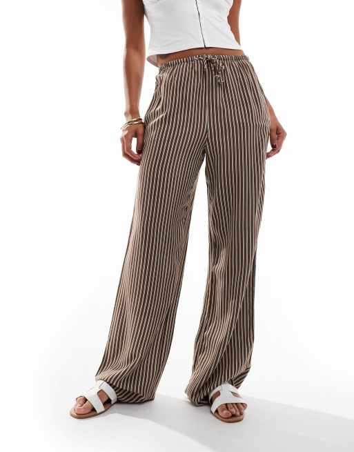 Bershka - Pantaloni a fondo ampio marroni gessati con coulisse in vita