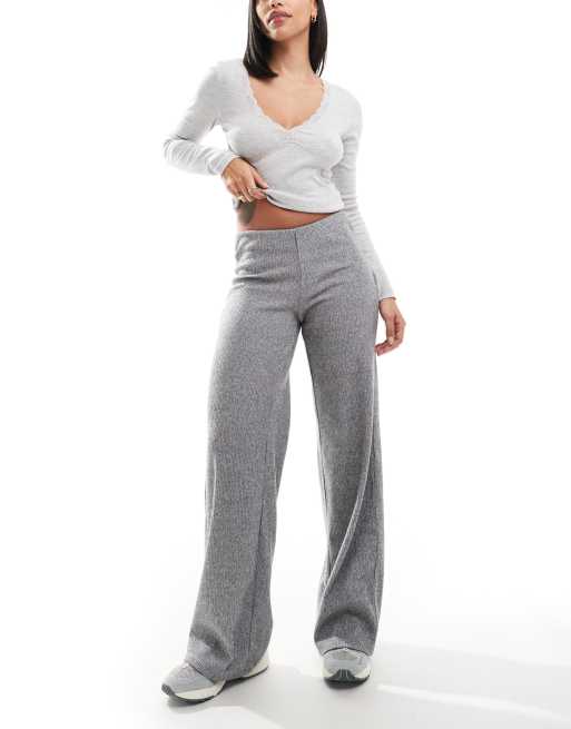 Bershka - Pantaloni a fondo ampio morbidi al tatto grigio chiaro