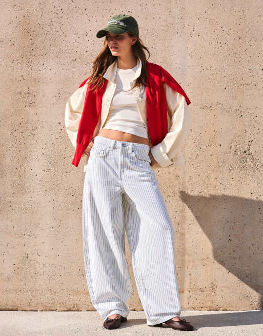 Bershka - Pantaloni a palloncino blu a righcurvo marrone