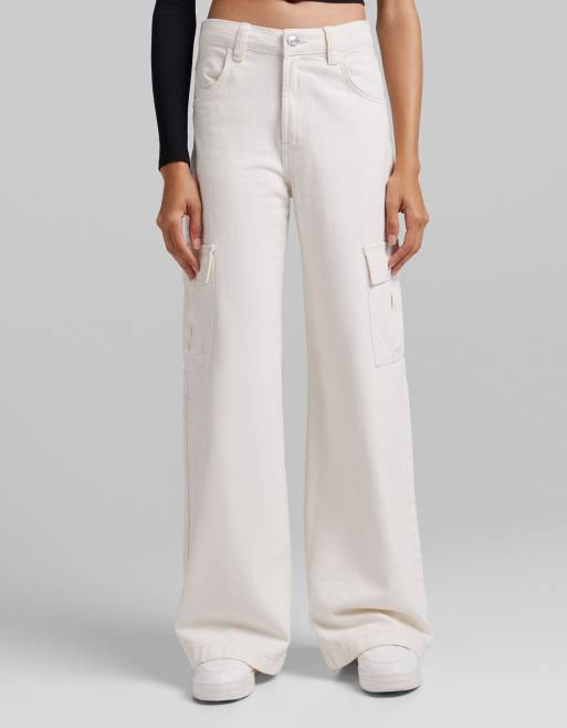 Bershka - Pantaloni cargo a fondo ampio color crema