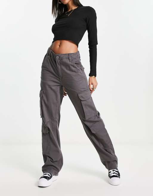 Bershka - Pantaloni cargo multitasche grigio scuro