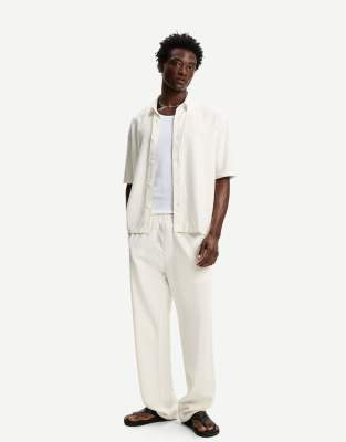 Bershka - Pantaloni con fondo ampio stile joggers in misto lino bianchi