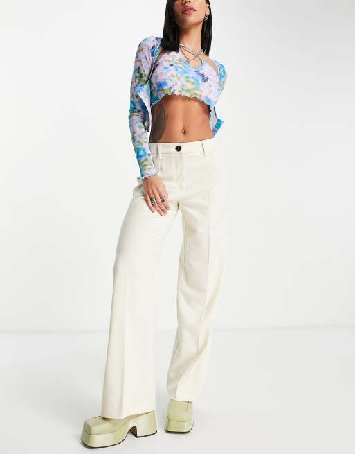 Bershka - Pantaloni dad sartoriali a fondo ampio extra larghi bianco sporco