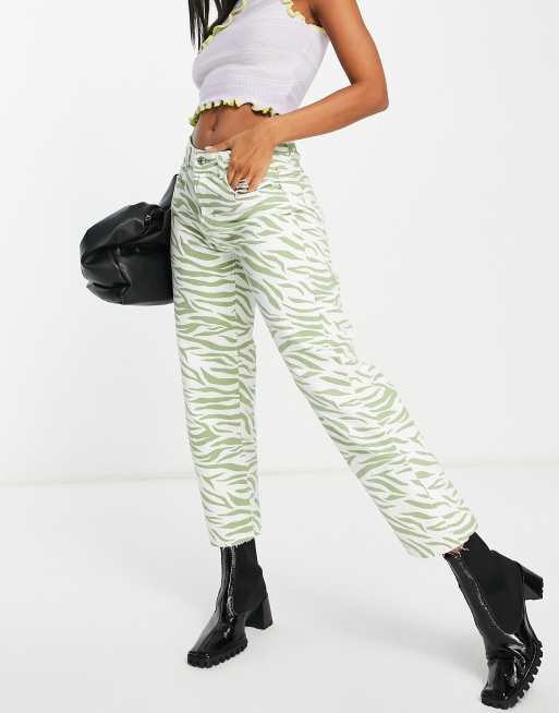 Bershka - Pantaloni dritti verde zebrato