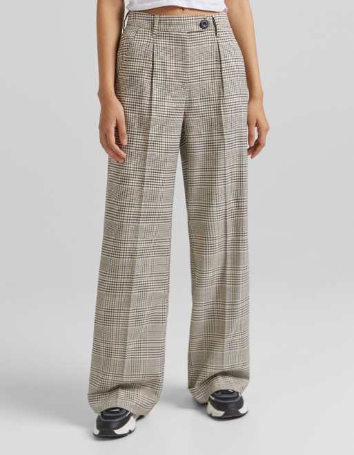 Bershka - Pantaloni sartoriali extra larghi a fondo ampio beige a quadri