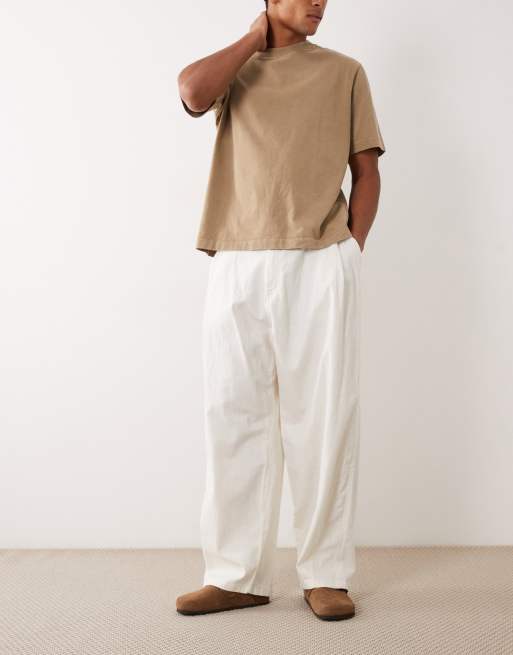 Bershka - Pantaloni super ampi in misto lino bianchi