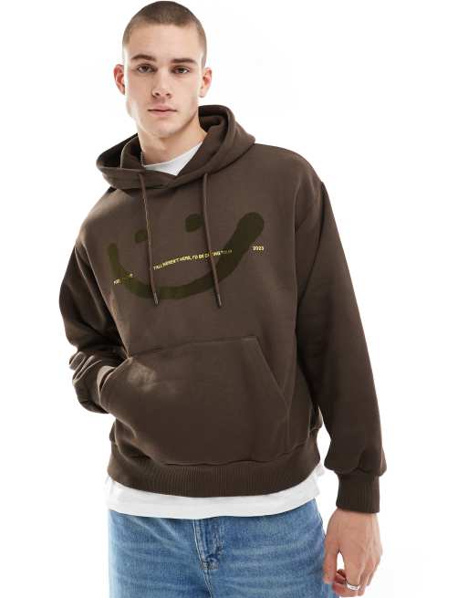 Bershka - Post Malone - Felpa con cappuccio squadrata marrone