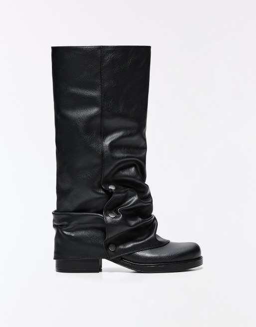 Bershka - Stivali bassi effetto pantalone neri con fibbie
