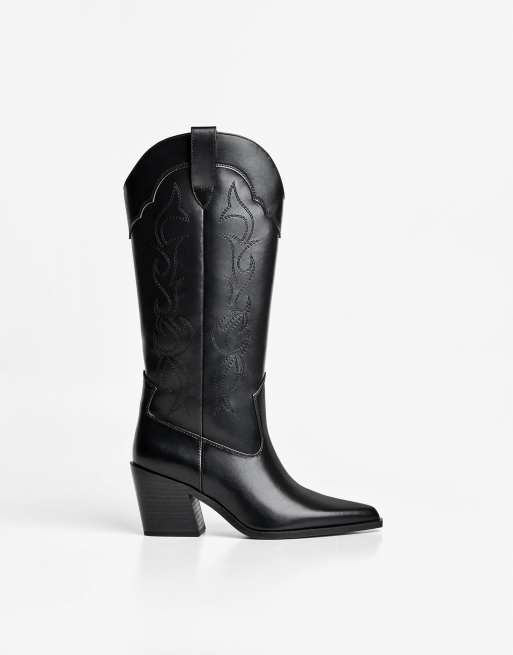 Bershka - Stivali stile cowboy neri ricamati con tacco alto