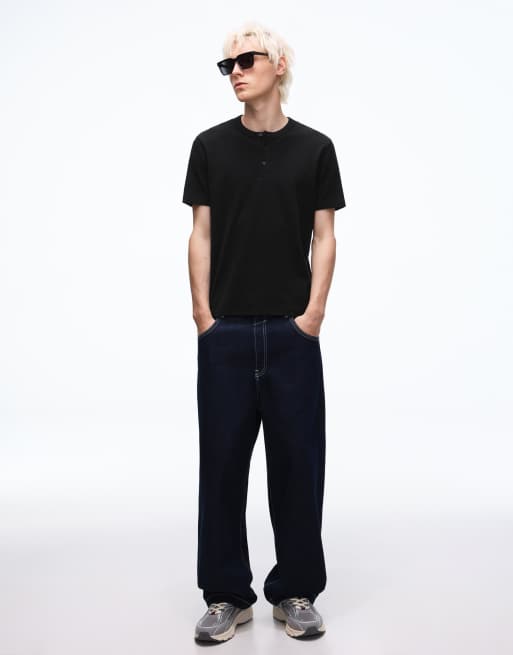 Bershka - T-shirt a maniche corte in maglia piqué nera