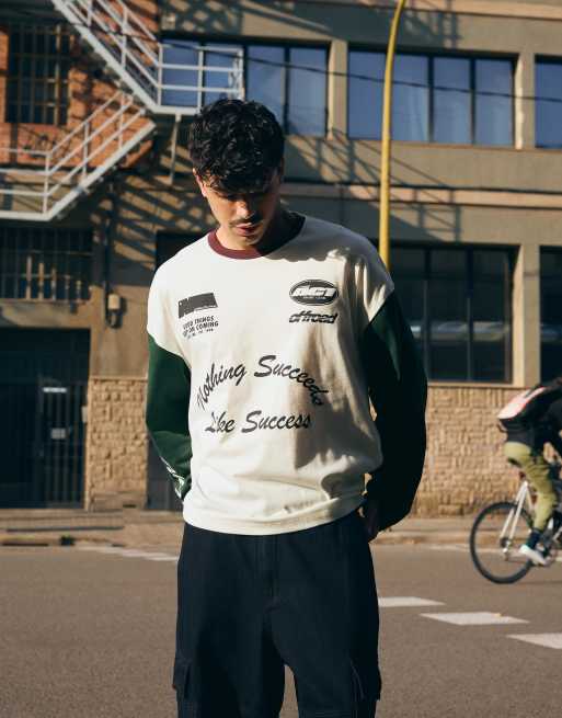 Bershka - T-shirt a maniche lunghe verde con stampa a contrasto