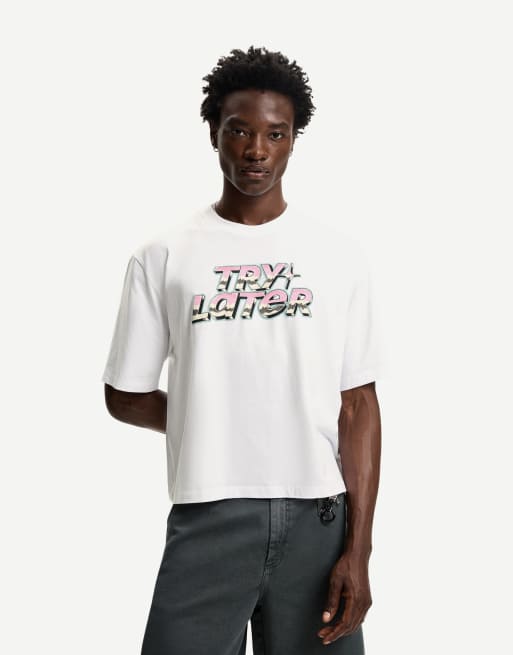 Bershka - T-shirt corta a maniche corte bianca con stampa