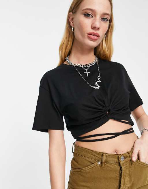 Bershka - T-shirt corta basic avvolgente nera