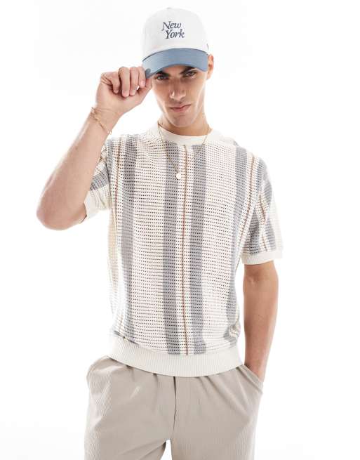 Bershka - T-shirt in maglia a righe beige