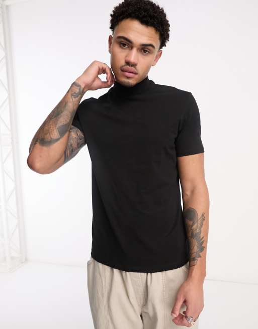 Bershka - T-shirt nera accollata