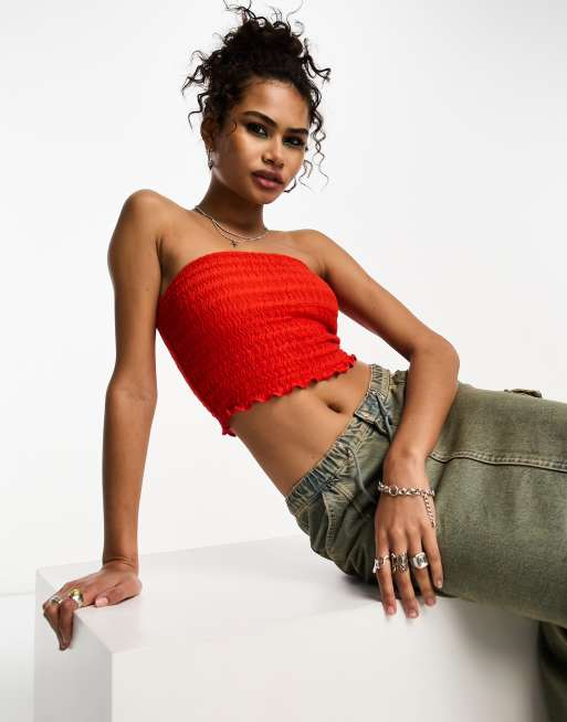 Bershka - Top a fascia arricciato arancione