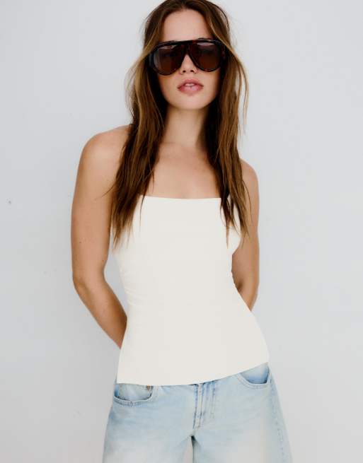 Bershka - Top allacciato al collo bianco