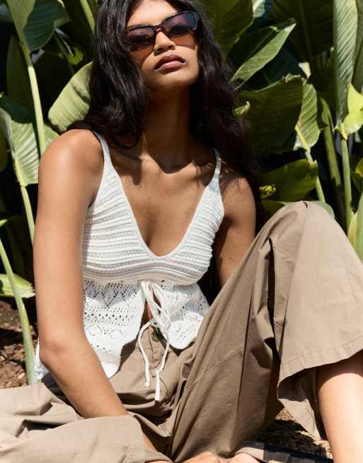 Bershka - Top bianco all'uncinetto