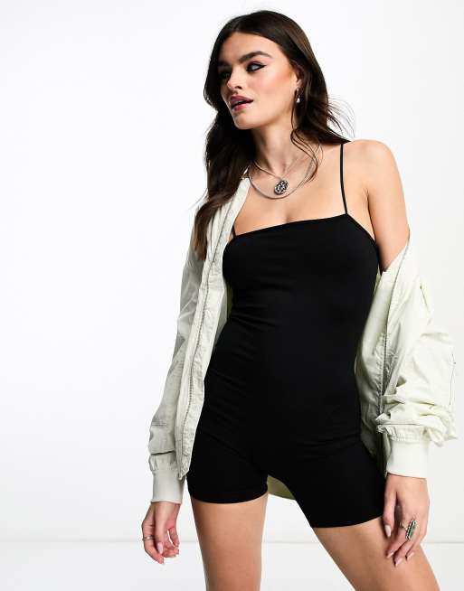 Bershka - Tuta aderente corta nera senza cuciture