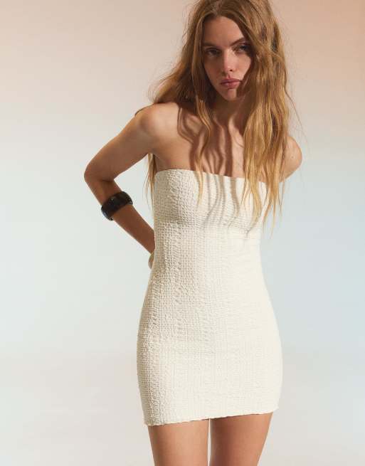 Bershka - Vestito corto a fascia bianco rustico
