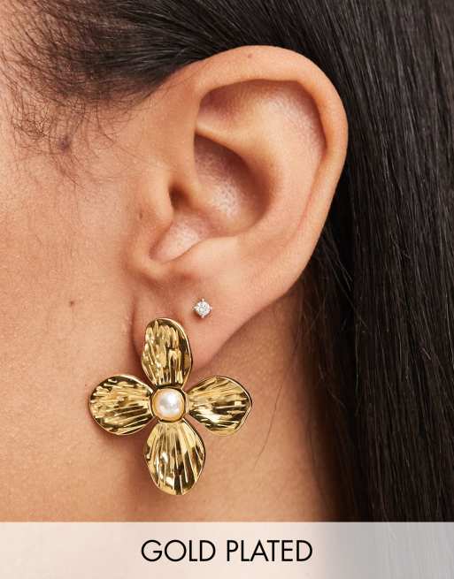 Bohomoon - Aurelie - Orecchini a forma di fiore in acciaio inossidabile placcati oro con perle