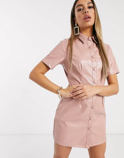 Boohoo - Vestito corto con bottoni in pelle sintetica rosa pallido
