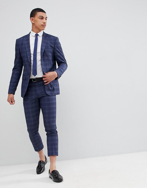 boohooMAN - Abito skinny blu navy a quadri