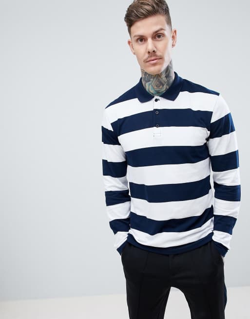 boohooMAN - Maglietta a maniche lunghe blu navy a righe