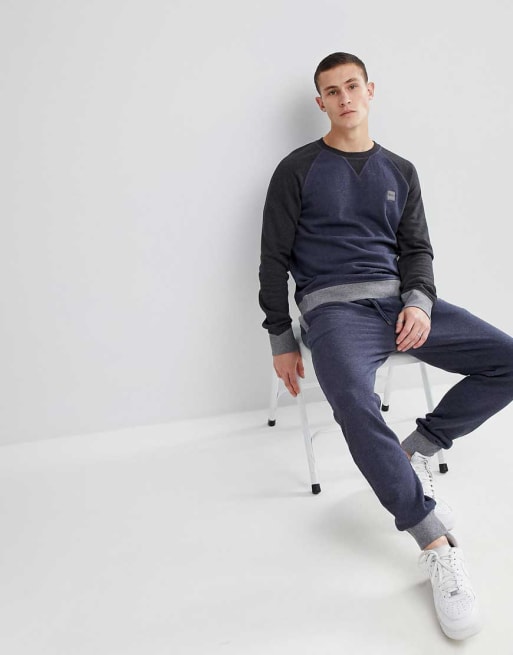 BOSS - Felpa girocollo blu navy con maniche a contrasto