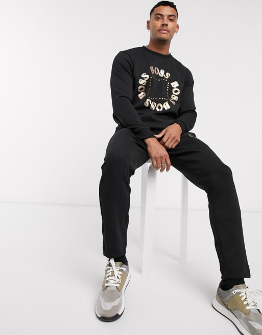 BOSS Athleisure - Tuta sportiva nera con logo circolare