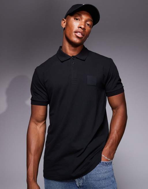 BOSS Green - Paddy DropNeedle - Polo regular fit in piqué nera con riquadro del logo