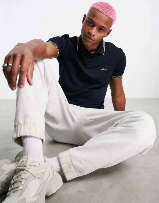 BOSS Green - Paul Curved - Polo blu navy/oro